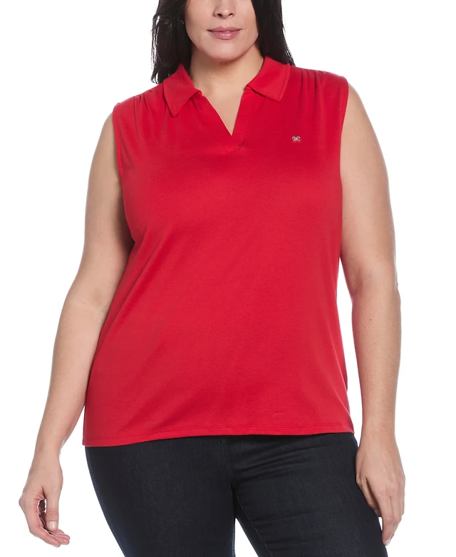 Rafaella Plus Ribbed V-Neck Sleeveless Polo T-Shirt