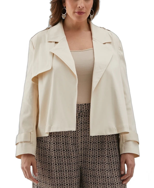 Rafaella Plus Crosshatch Patch Pocket Open Long Sleeve Cardigan Sweater