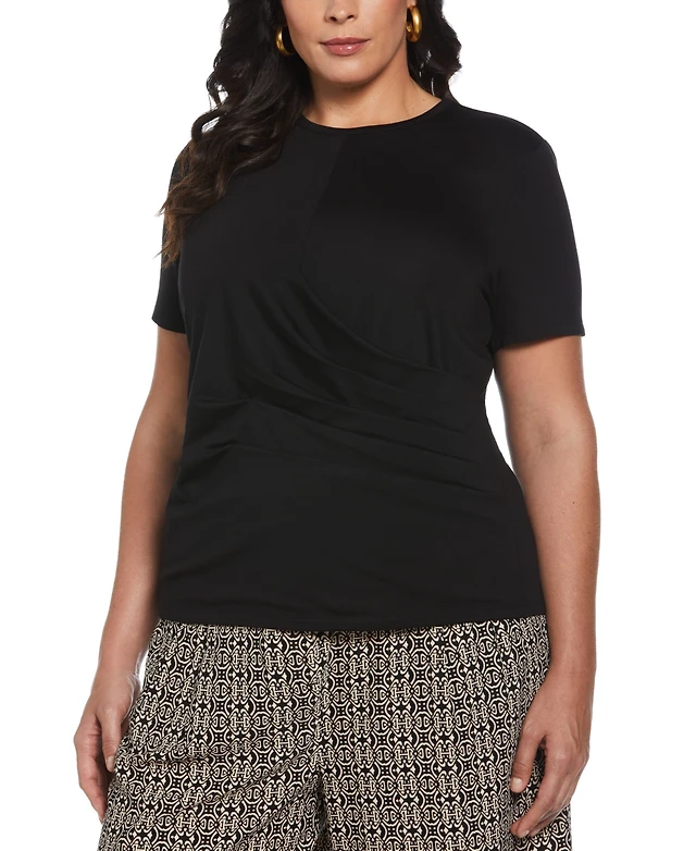 Ella Rafaella Plus Asymmetrical Wrap Short Sleeve Top