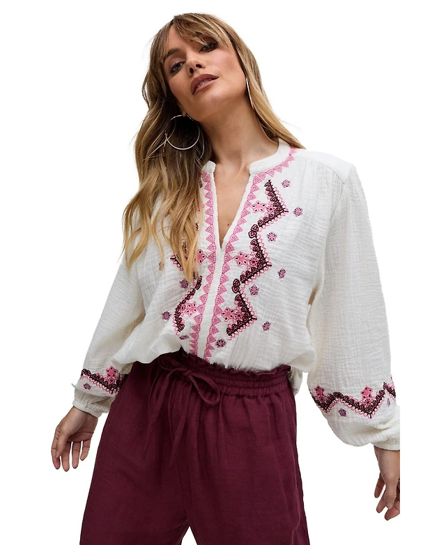 Raffya Women's Dina V-Neck Embroidered Blouse