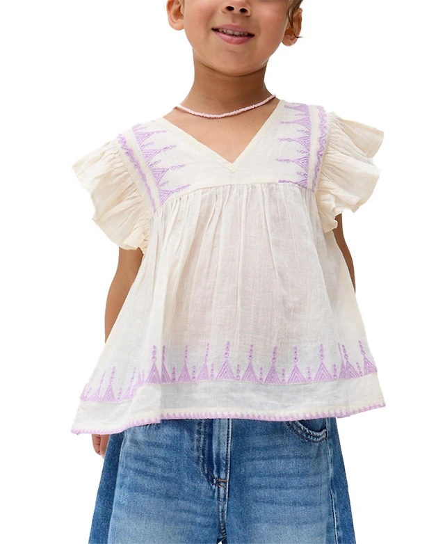 Raffya Kids Mariana Flutter Sleeve Embroidered Blouse