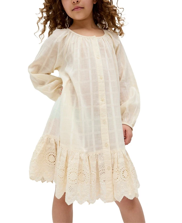 Raffya Kids Little Girls Furla Smocked Panel Embroidered Dress Cream