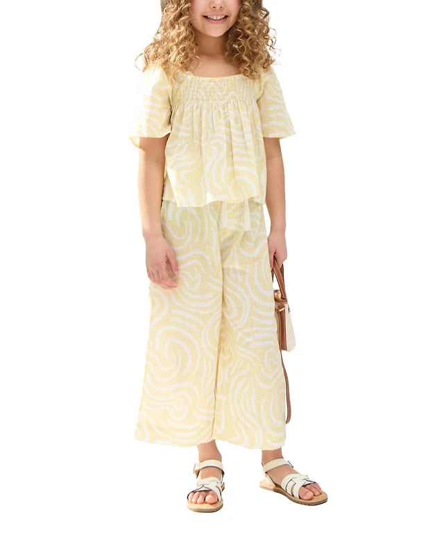 Raffya Kids Little Girls Nia Shirred Neck Zebra Swirl Print Co-Ords Set