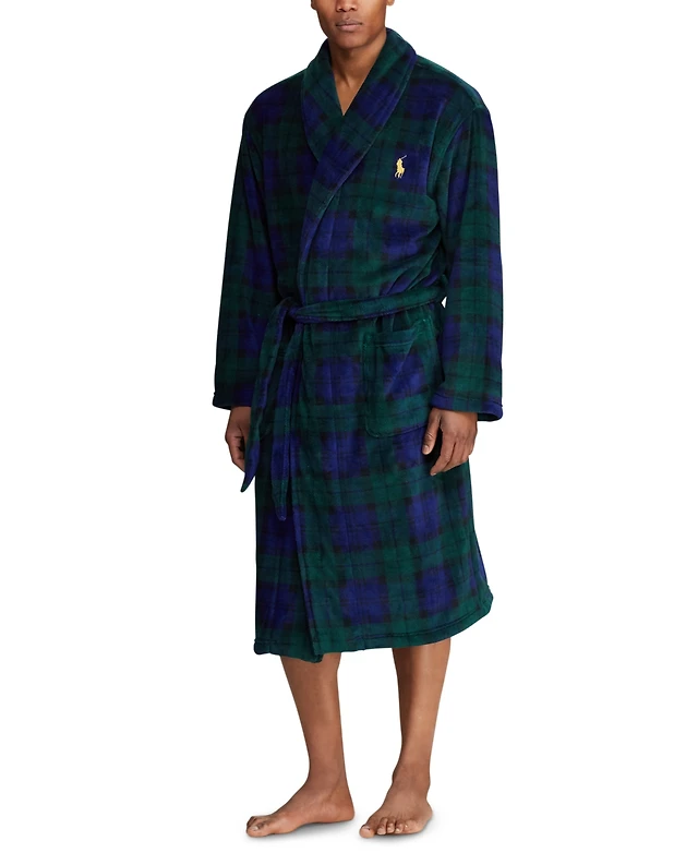 Polo Ralph Lauren Men's Microfiber Plaid Shawl Collar Robe
