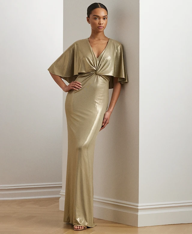Lauren Ralph Lauren Women's Twist-Front Cape-Overlay Gown