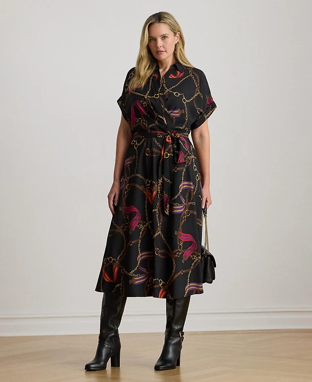 Lauren Ralph Plus Chain-Print Crepe Shirt-Dress