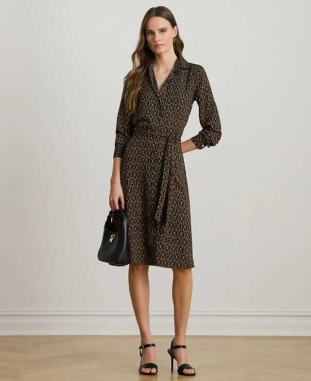 Lauren Ralph Petite Chain Print Point Collar Shirtdress