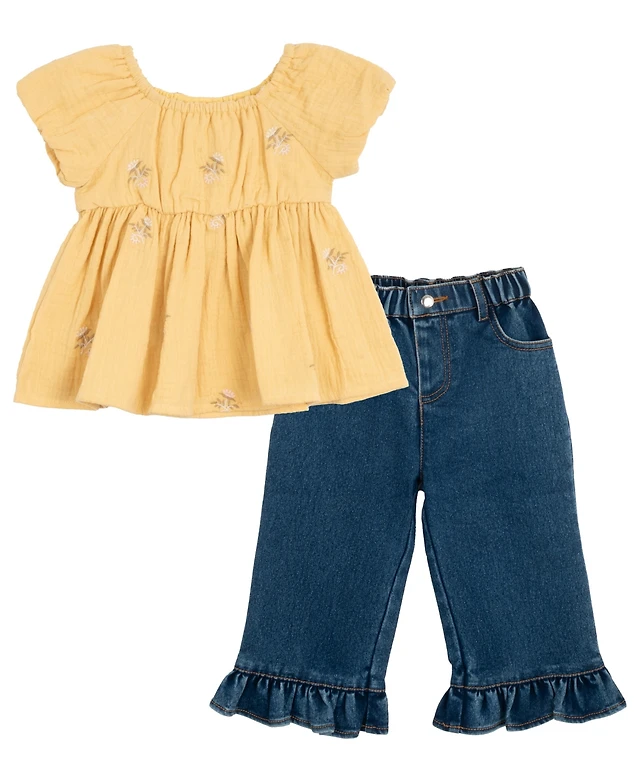 Rare Editions Baby Girls 2-Piece Embroidered Top Ruffle and Jeggings Set