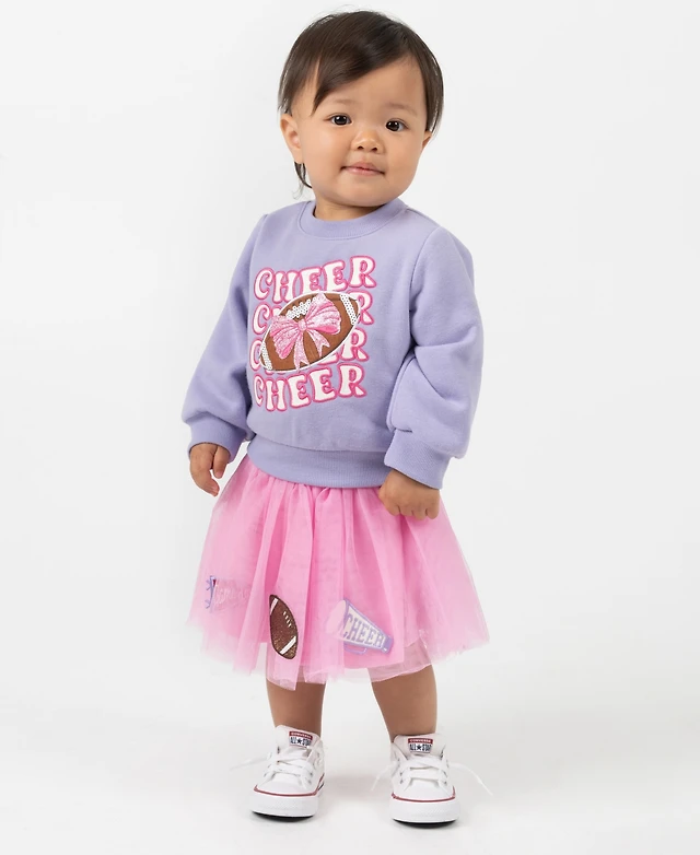 Rare Editions Baby Girls 2-Piece French Terry Cheer Sweatshirt and Tutu Skirt Set