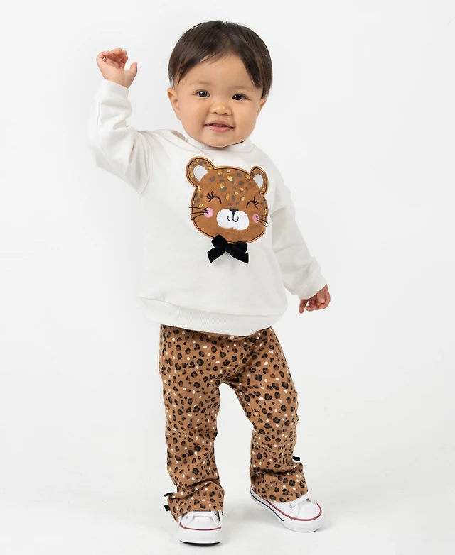 Rare Editions Baby Girl 2-Piece Cheetah Applique Sweatshirt with Flared Leggings Set