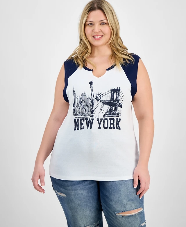Rebellious One Trendy Plus Size Cotton New York Graphic Top