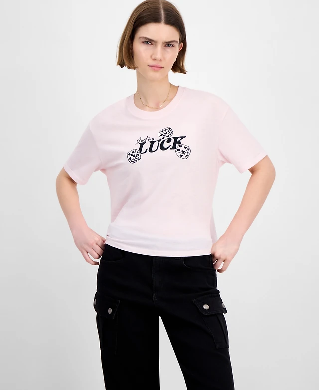 Rebellious One Juniors' Cropped Embroidered Luck T-Shirt