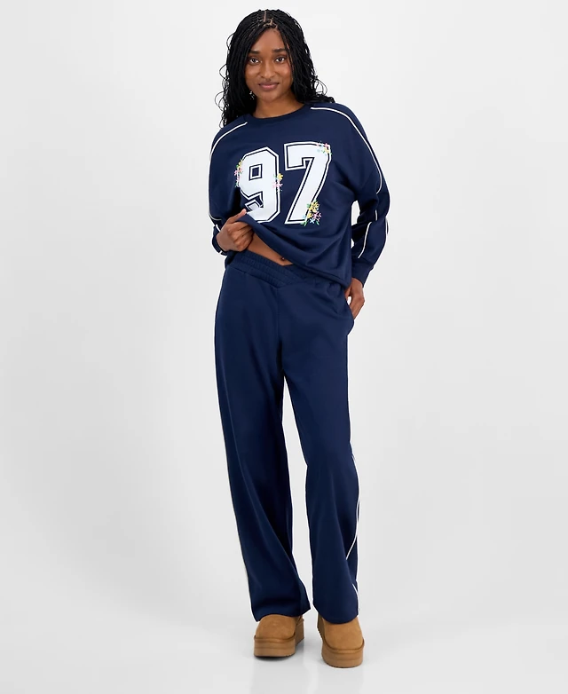 Rebellious One Juniors 97 Blossom Crewneck Sweatshirt Piped Sweatpants