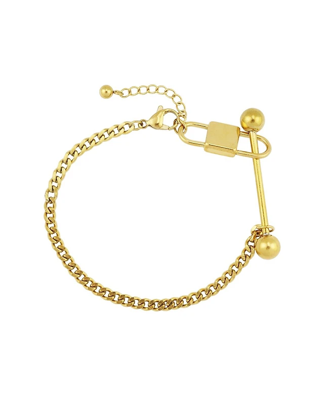 Rebl Jewelry 18k Gold Plated Stainless Steel Bar Lock Chain Bracelet