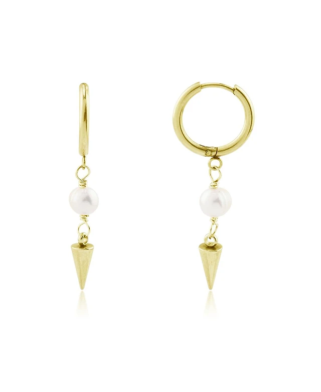 Rebl Jewelry Ash Pearl and Spike Huggie Earring