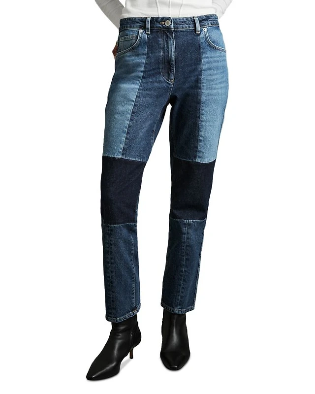 Birch Mid Rise Patch Straight Leg Jeans Blue