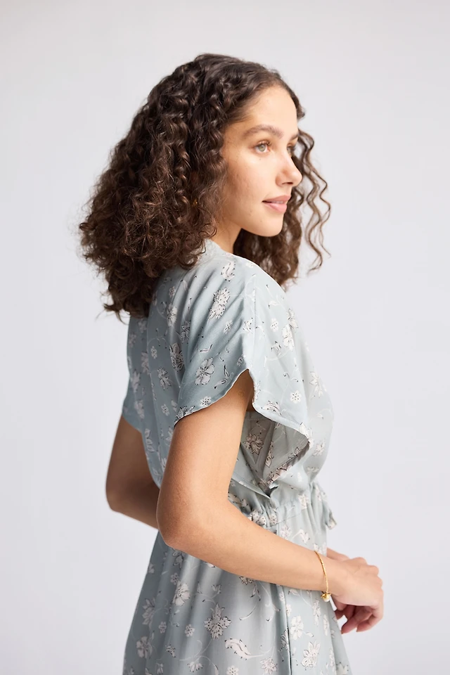 Reistor Women's Drawstring Shirt Dress Blue Florals