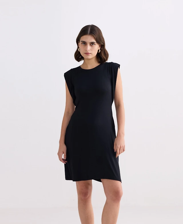 Reistor Women's Oversized V neck Short Dress with Frayed Sleeves