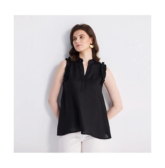 Reistor Women's Boxy V-neck Top with Fray Detail