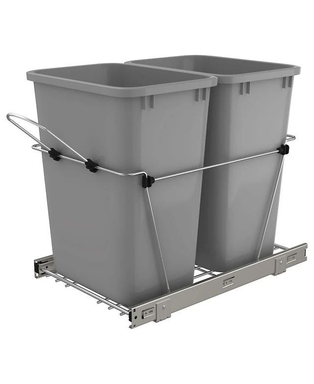 Rev-a-shelf Double Pullout Trash Can 27 qt. for Kitchen, Gray, Rv-15KD-13C-S