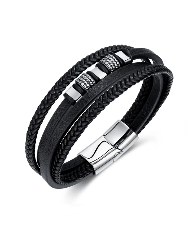 Rhona Sutton Black Apex Multi Leather Stainless Steel Bracelet