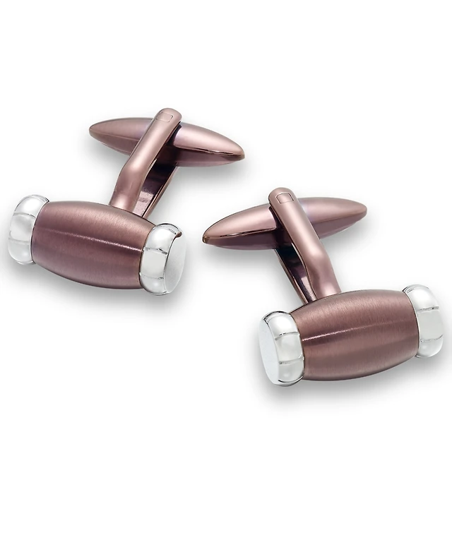 Sutton by Rhona Sutton Men's Stainless Steel Copper and Rhodium Barrel Cuff Links
