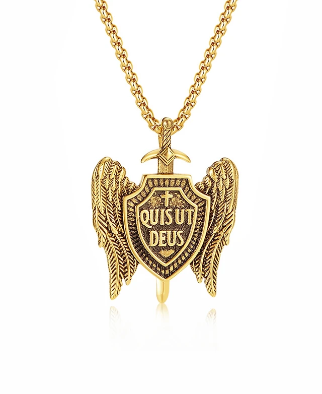 Rhona Sutton Gold Quis Ut Deus Stainless Steel Pendant Necklace