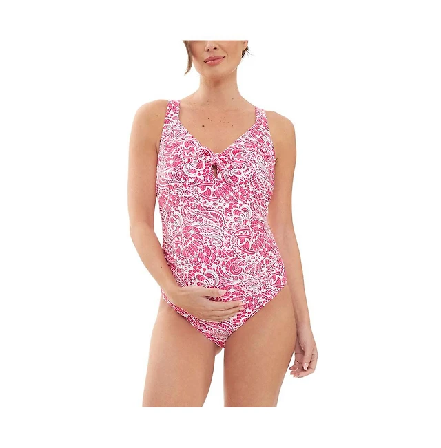 Ripe Maternity Maternity Ripe Janis Tie Front One Piece Hot Pink/White