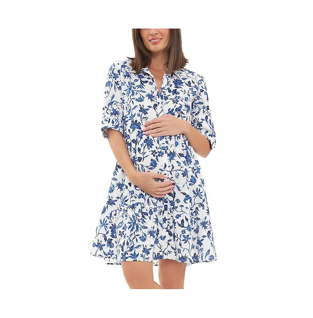 Ripe Maternity Capri Shirred Dress White/Lapis