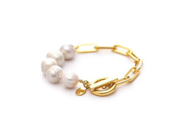 Rivka Friedman Natural Pearl Bead and Chain Toggle Bracelet
