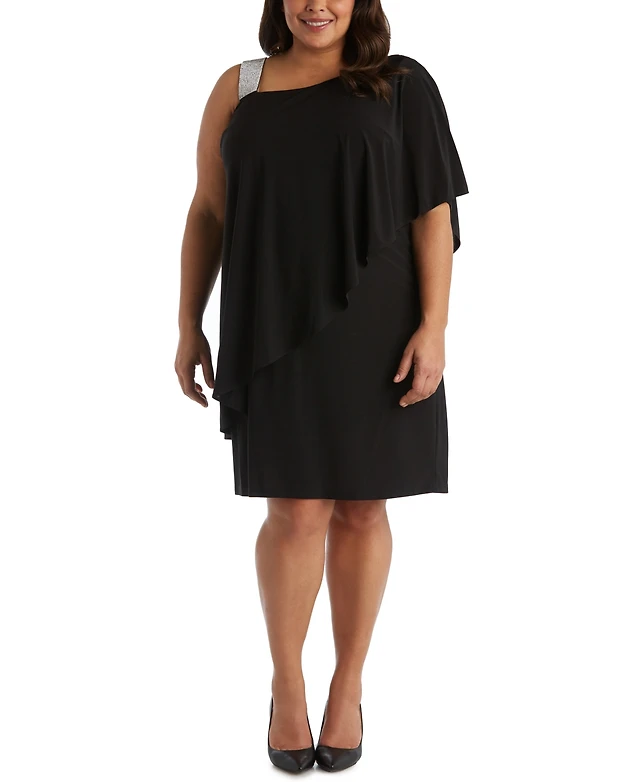 R & M Richards Plus Size Rhinestone-Trim One-Shoulder Dress