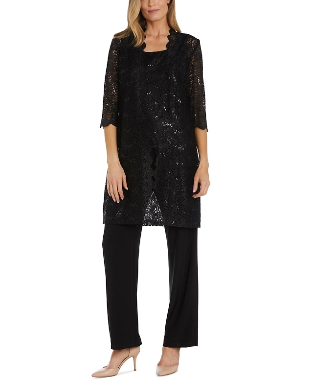 R & M Richards 3-Pc. Sequined Lace Pantsuit Jacket