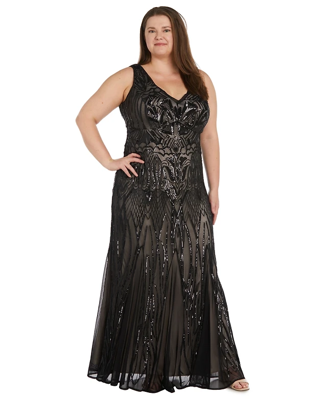 R & M Richards Plus Beaded V-Neck Maxi Dress