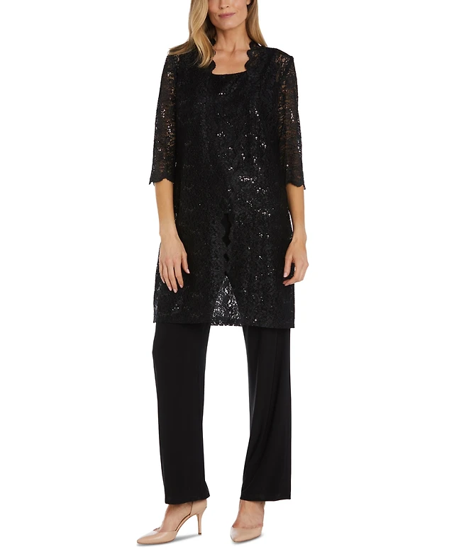 R & M Richards Petite 3-Pc. Sequined-Lace Jacket, Top Pants