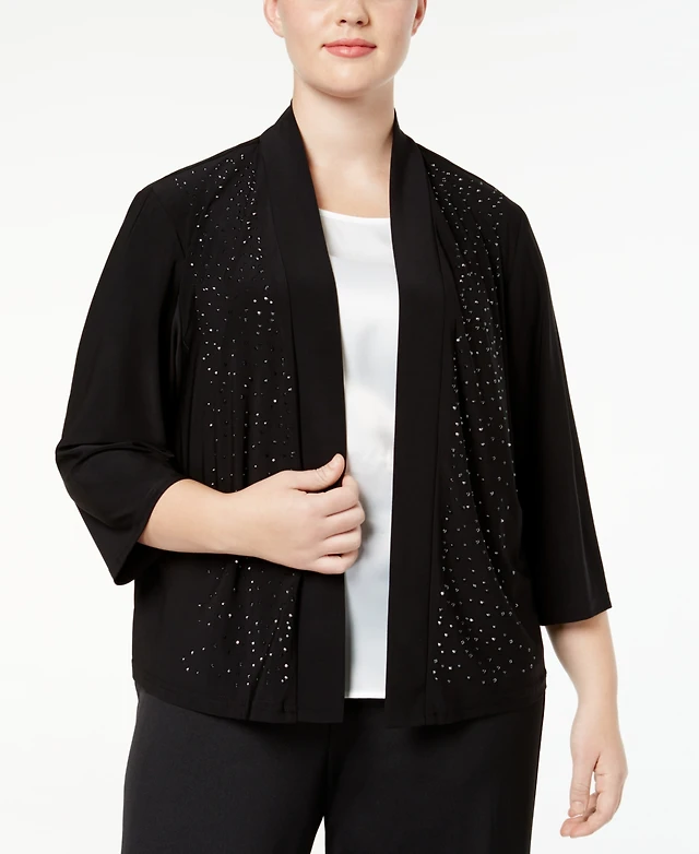 R&M Richards Plus Cardigan, Beaded Open Front