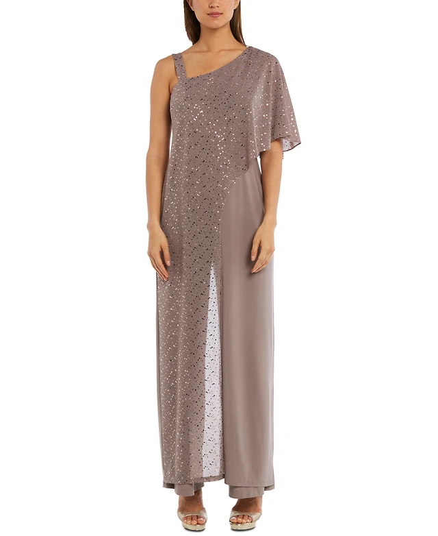 R & M Richards One-Shoulder Metallic Jumpsuit