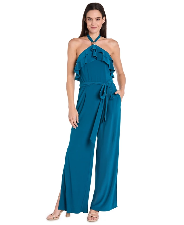 R & M Richards Women's Ruffled Halter-Neck Jersey Jumpsuit