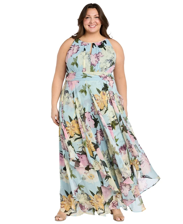 R & M Richards Plus Printed Sleeveless Ruffle Dress