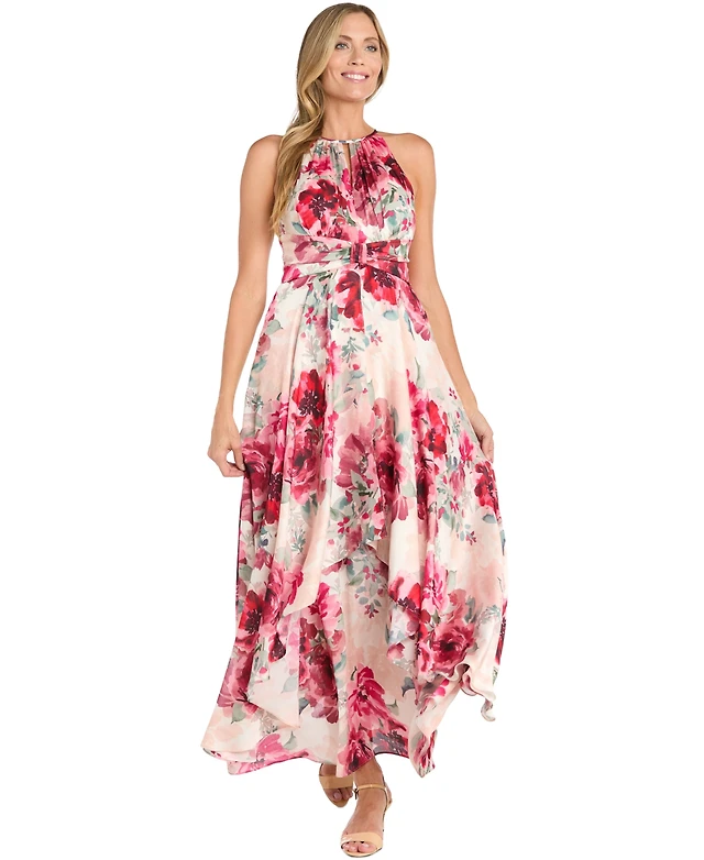 R & M Richards Women's Printed Ruffle Detail Maxi Dress