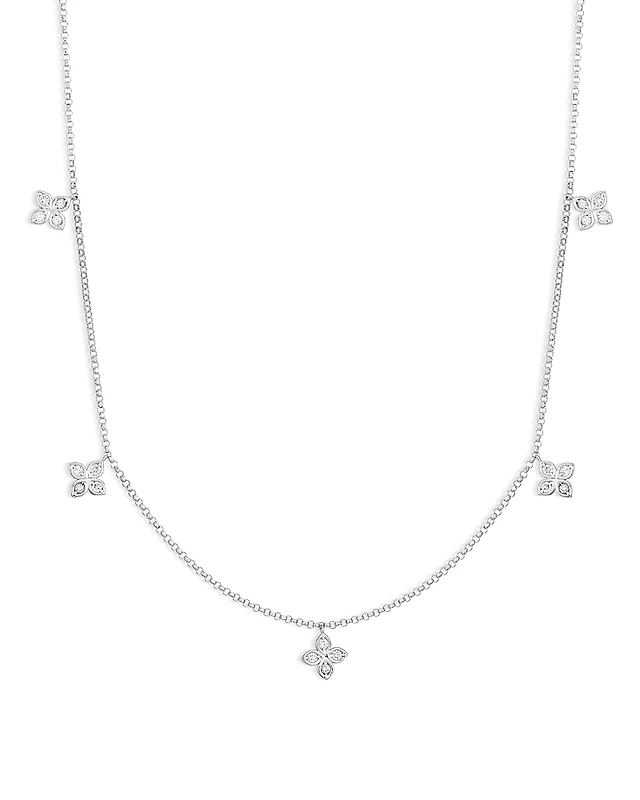 Roberto Coin 18K White Gold Love by the Inch Diamond Flower Station Necklace, 15-17