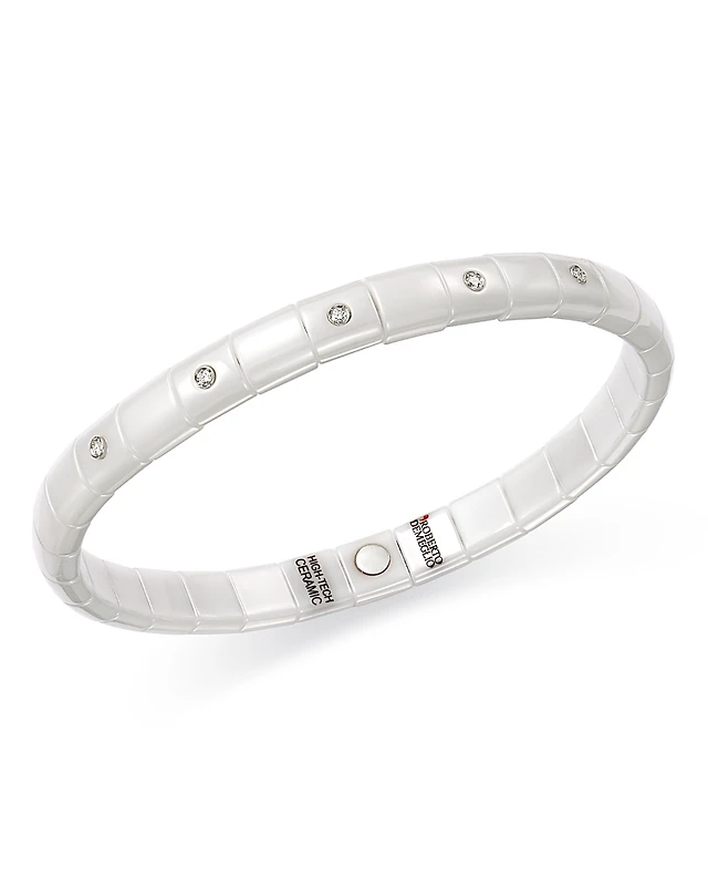 Roberto Demeglio 18K White Gold & White Ceramic Pura Stretch Bracelet with Diamonds