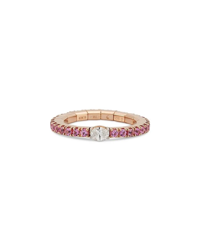 18K Rose Gold Extensible by Demeglio Diamond Oval & Pink Sapphire Stretch Band