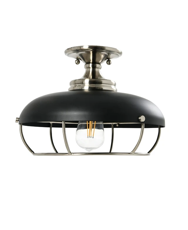 Robert Stevenson Lighting Presley - Caged Dome Metal Semi-Flush Mount Ceiling Light Brushed Nickel