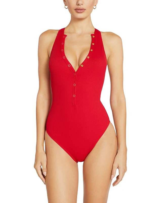 Ava Plunge Neck Tie-Front One Piece Swimsuit