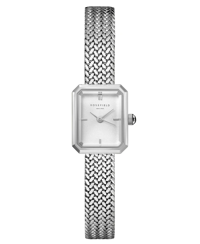 Rosefield Octagon Xs Women's Silver Tone Stainless Steel Mesh Bracelet Watch 24mm