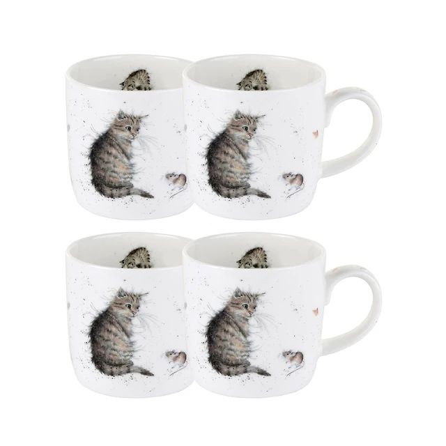 Royal Worcester Wrendale Cat Mug Cat and Mouse Set of 4