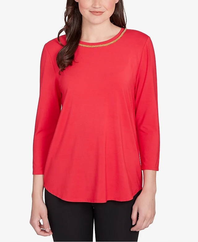 Ruby Rd. Petite Embellished Scoop Neck Solid Knit Top