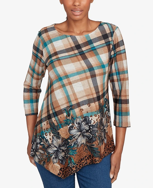 Ruby Rd. Petite Floral Plaid Cozy Ballet Neck Top