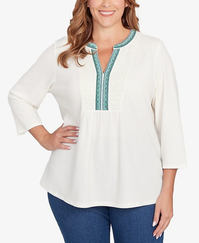 Ruby Rd. Plus Embellished Textured Split Neck Top