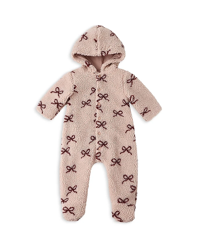 Rylee + Cru Girls' Bow Print Hooded Fleece Footie - Baby